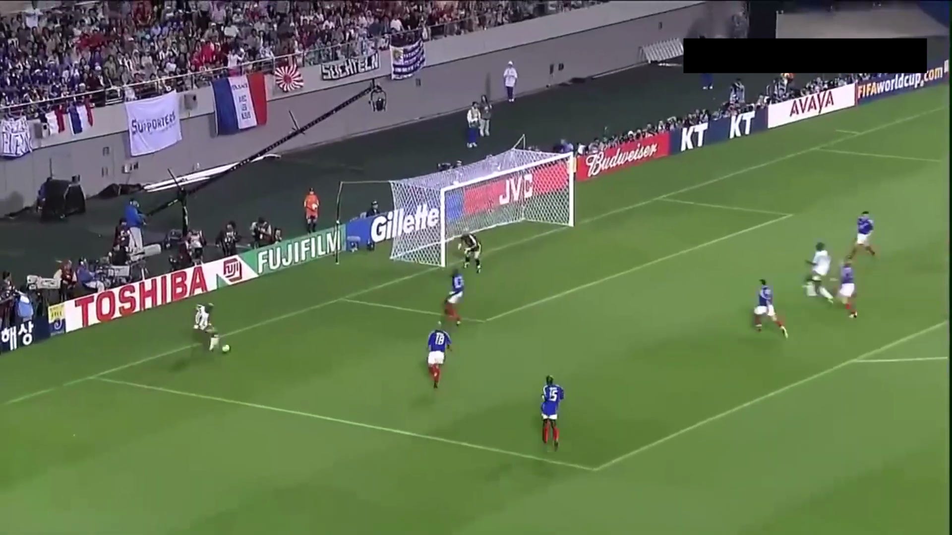 Senegal’s strategy was obvious from the start: sit back, let France have the ball, then get El Hadji Diouf running at those older defenders on the counter. They’d very frequently have everyone but Diouf in their own half, behind the ball. They exposed the threat pretty early on, when Diouf caught Lizarazu unaware to blitz past him, dragging Desailly wide before beating him on the dribble and putting in a cross for a decent chance. It might be hard to believe in light of his later career, but at 21 years old, Diouf was electric in this Senegal team, and exactly the type of attacker those French defenders didn’t want to face.