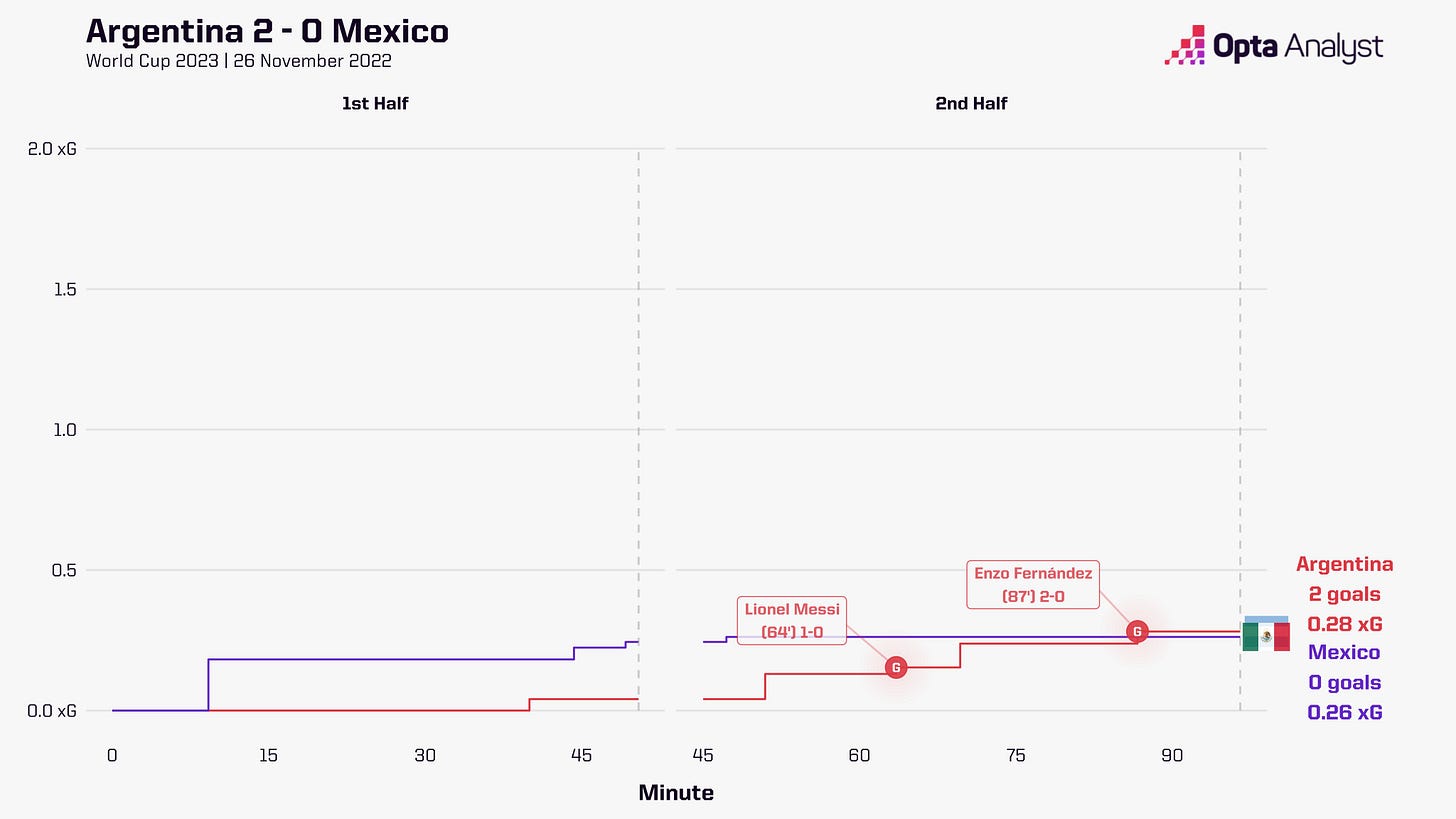 I thought Argentina actually played very well against Saudi Arabia in the first game and should have won. In the first half especially, they were creating high quality chances at will, even if they got marginally caught offside. It was a really positive performance that convinced me this was a very serious side, even if they didn’t get the three points.
